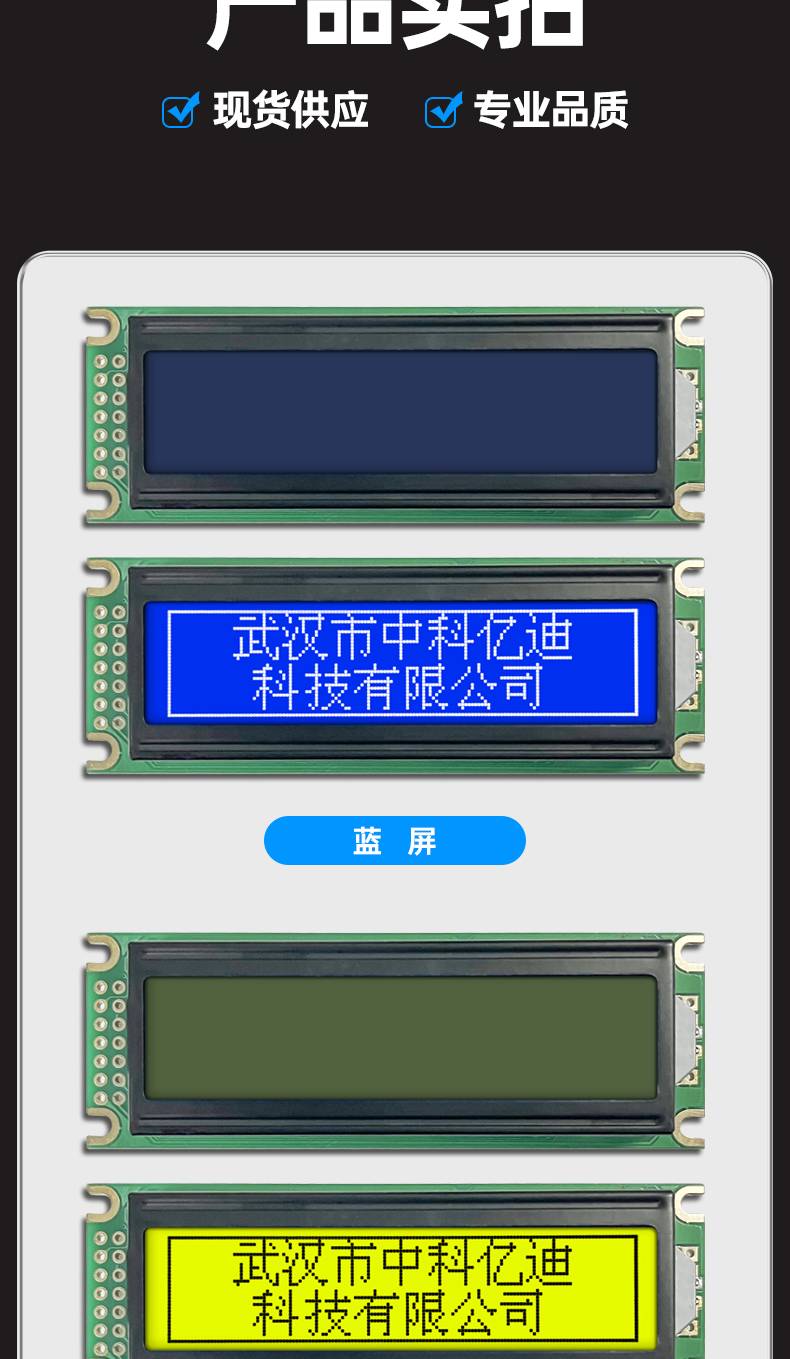 字符点阵LCM1604B液晶屏模块16个字符*4行蓝屏黄绿屏灰屏现货供应