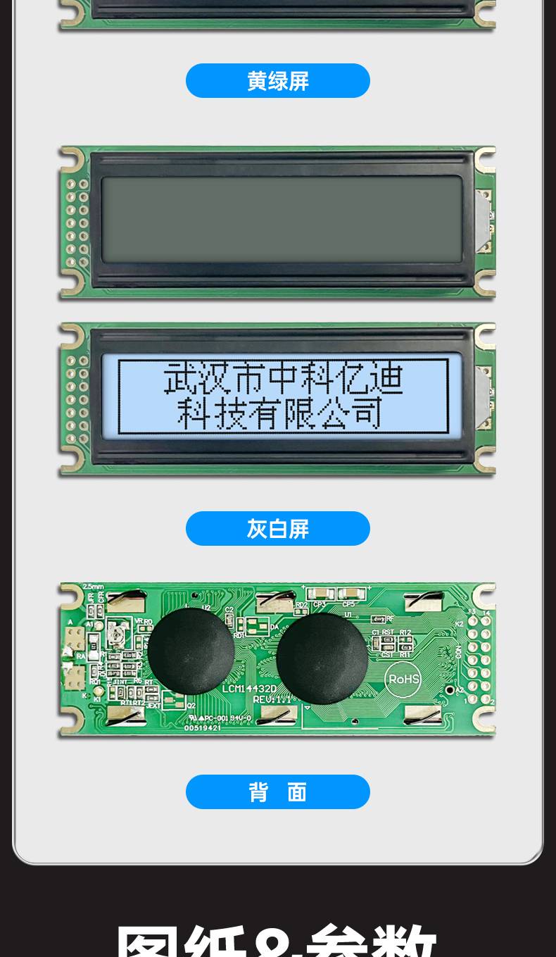 LCM0802液晶屏LCD0802C-1液晶显示模块蓝屏黄绿屏LED带背光5V3.3V