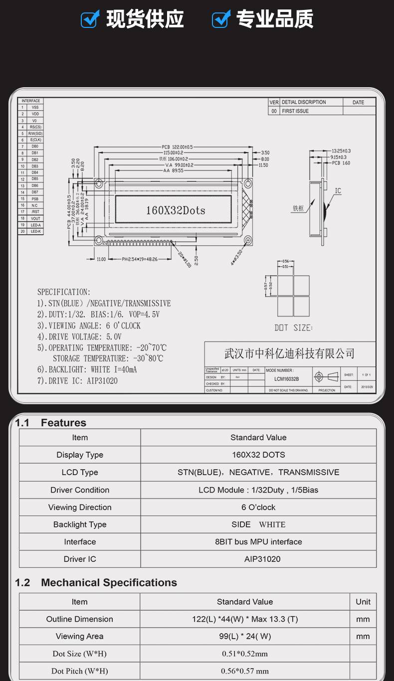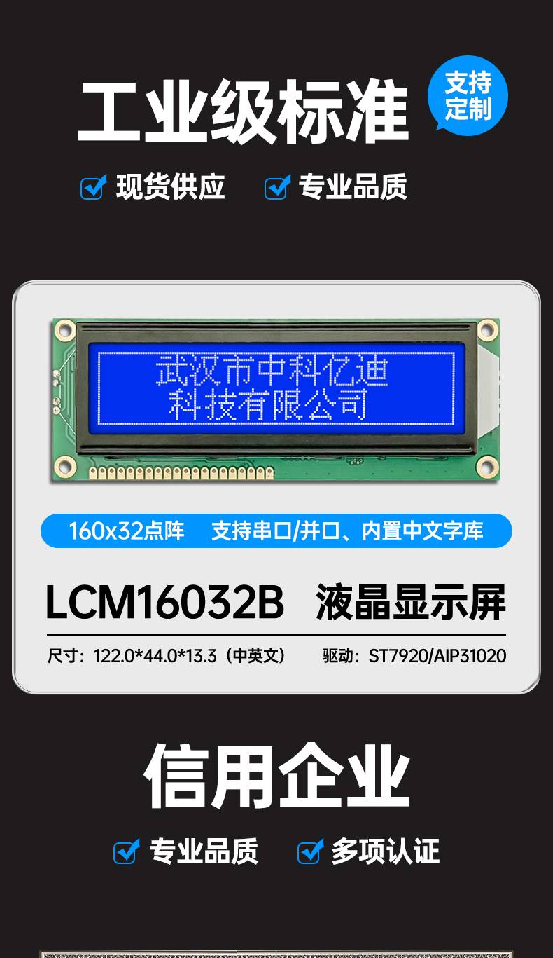 LCM16032B液晶屏模块160*32点阵16032B-6中文字库支持串口/并口