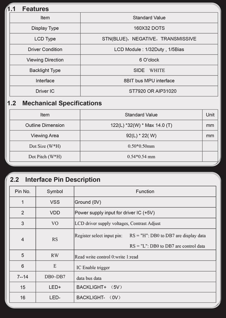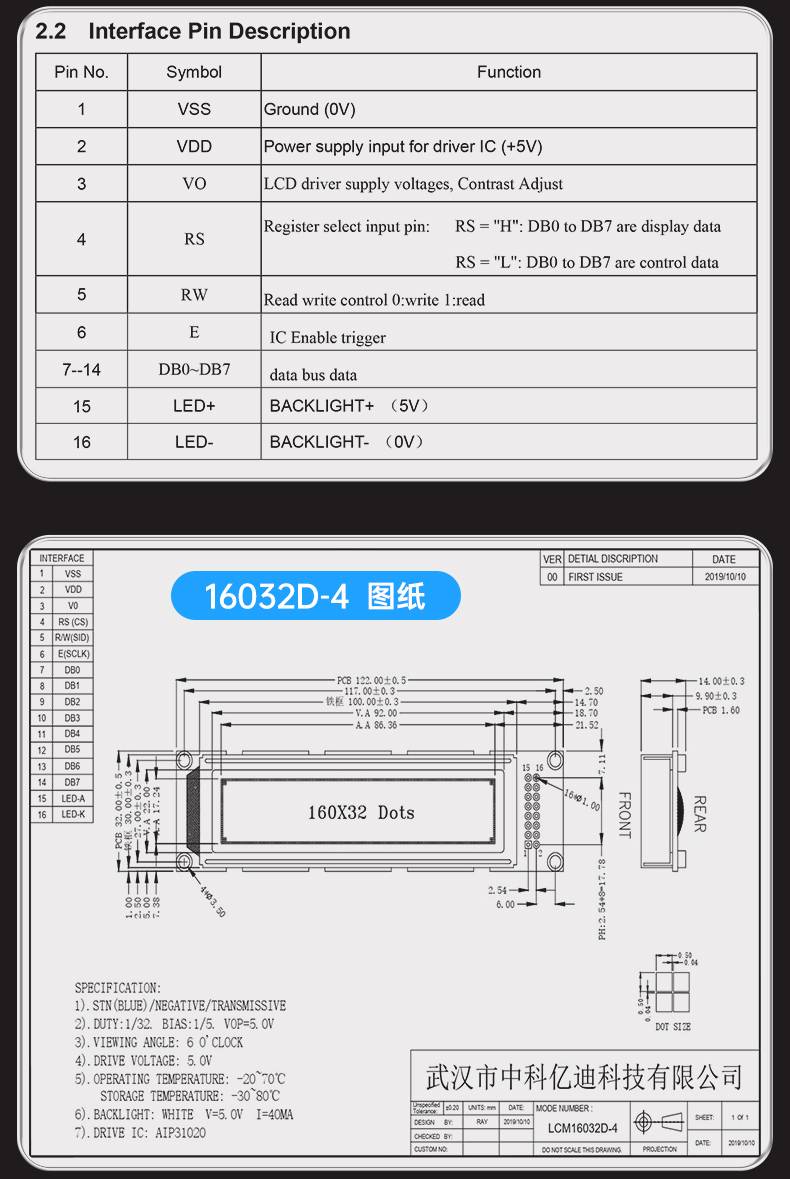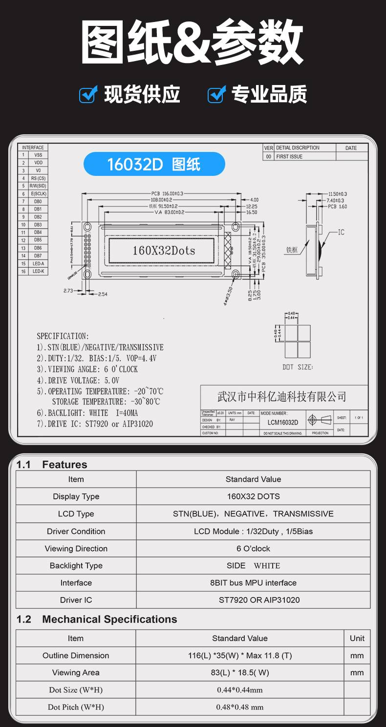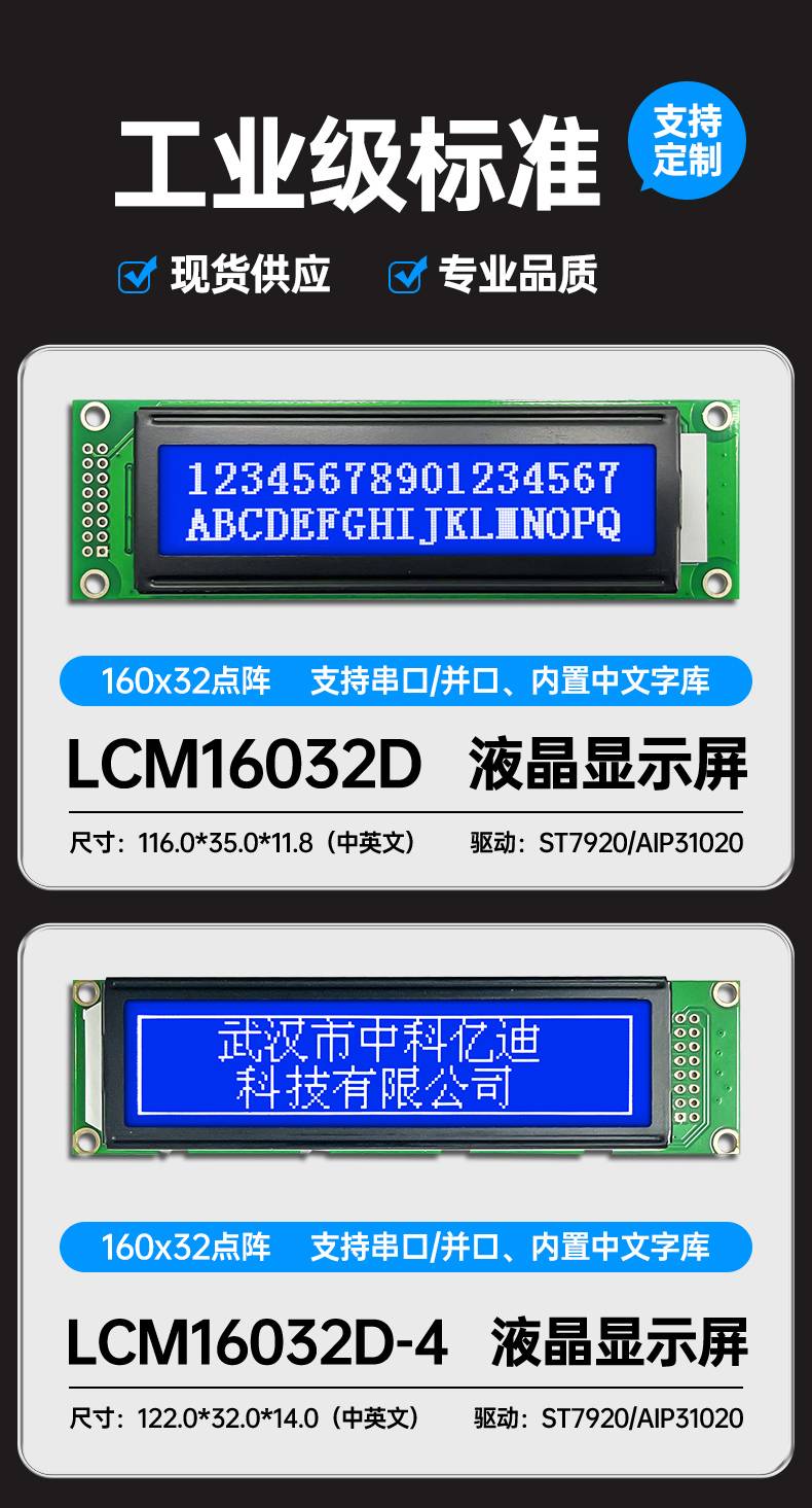 LCM16032D液晶屏模块160*32点阵16032D-4蓝屏3.3V5V工厂供应现货