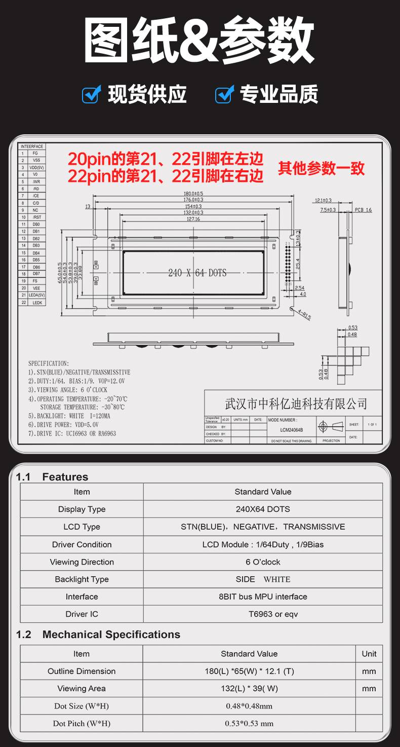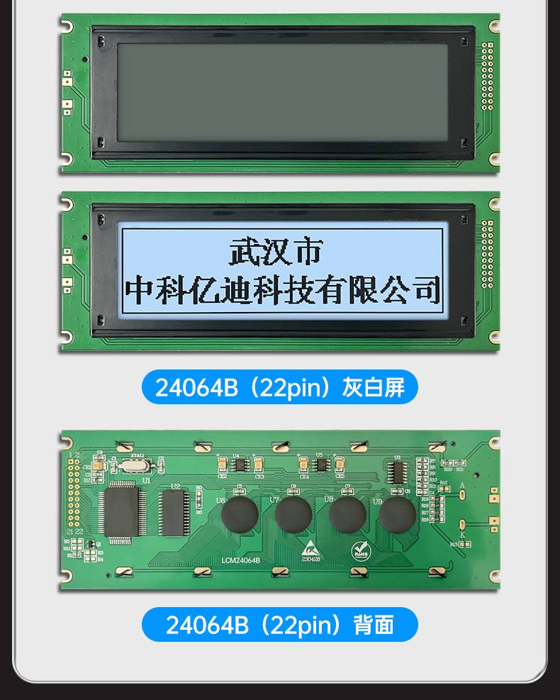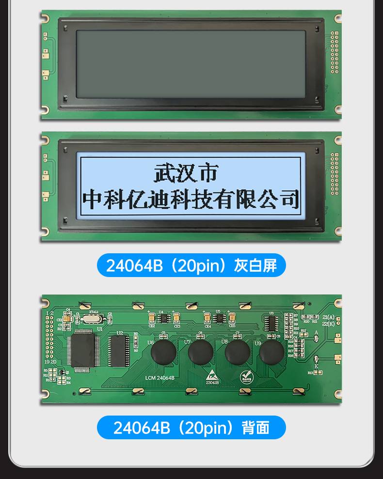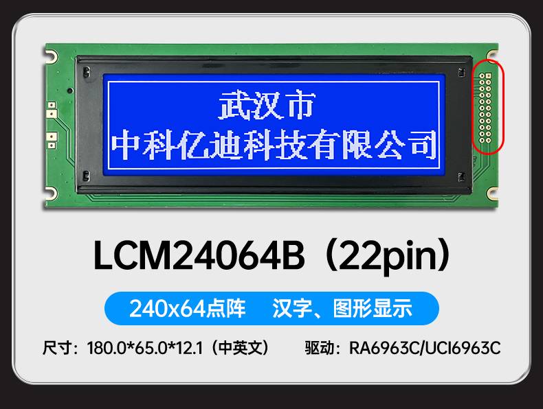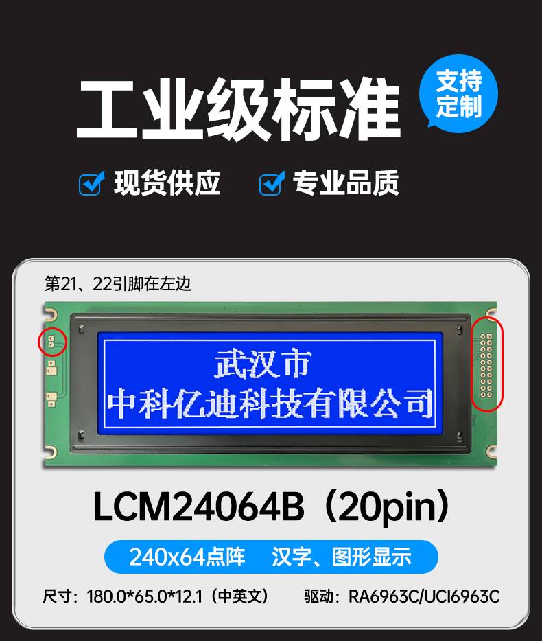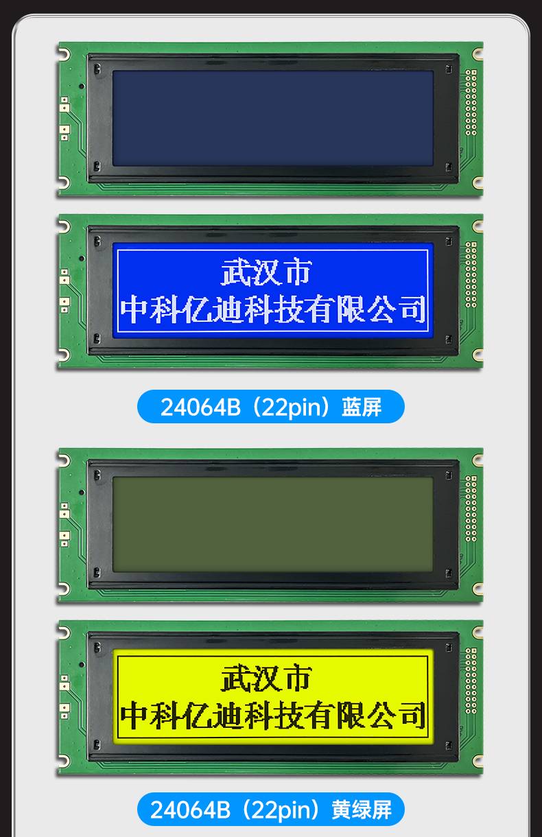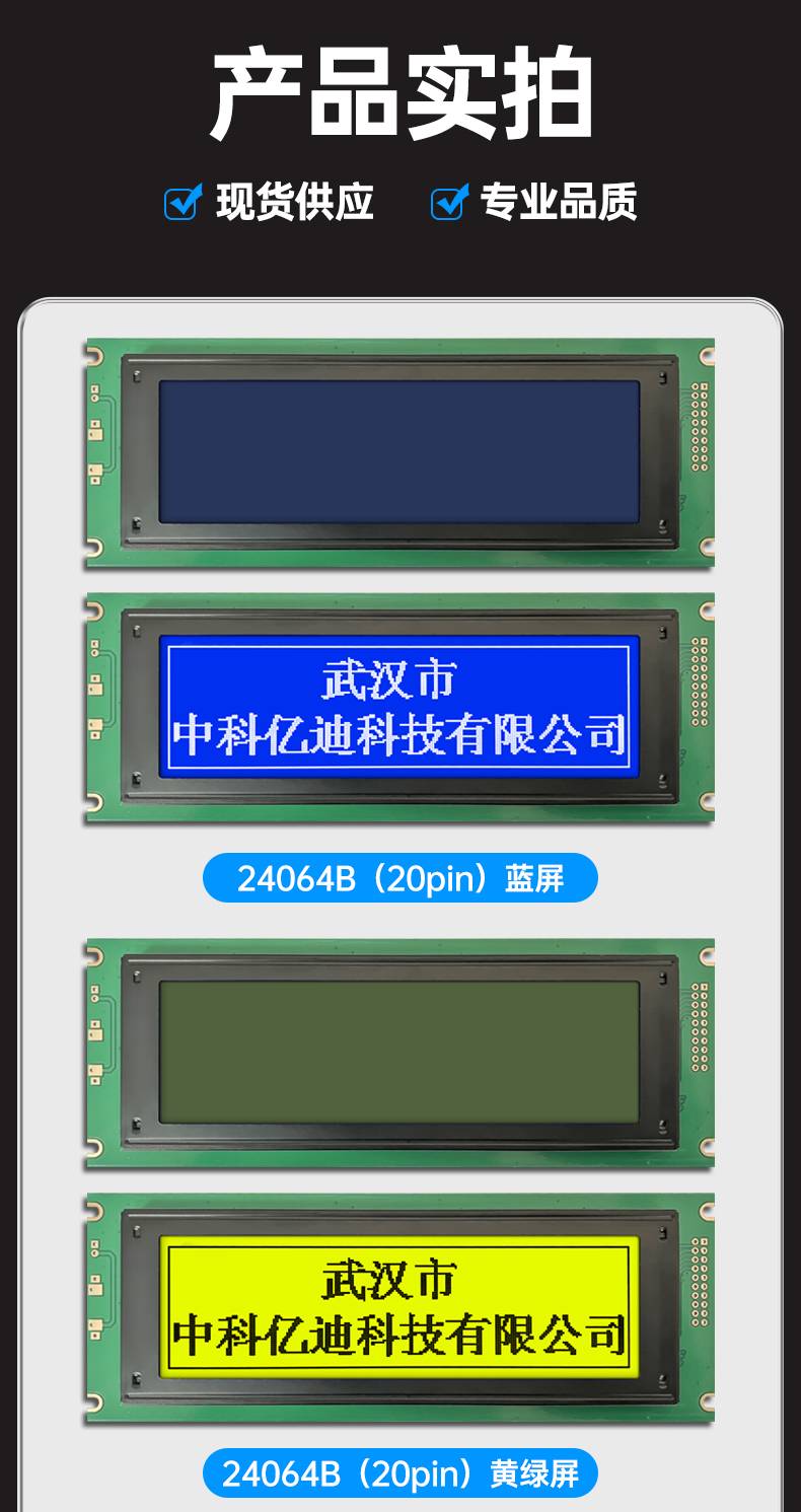 图形点阵LCM24064B液晶屏模块240*64点阵屏3.3V/5V蓝屏黄绿屏灰屏