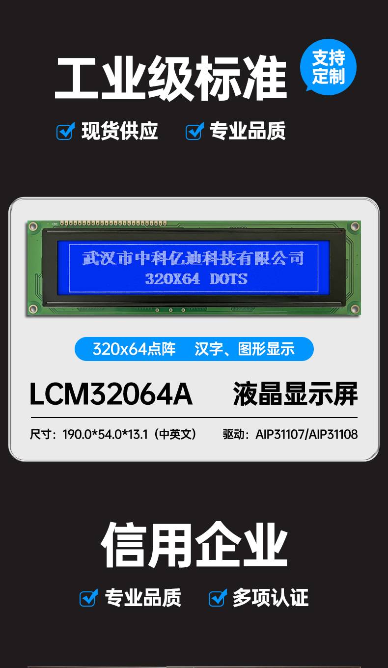 COG13232A液晶屏模块LCM13232显示屏3.3V支持串口并口连接蓝色屏