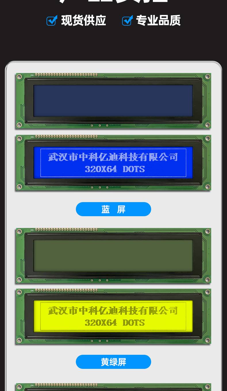 图形点阵LCM12232C液晶屏模块122*32蓝屏黄绿屏灰屏LCM模组3.3V5V
