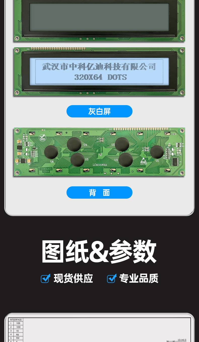 COG12864-19液晶显示屏模块LCM12864点阵液晶屏UC1701X串口灰白屏