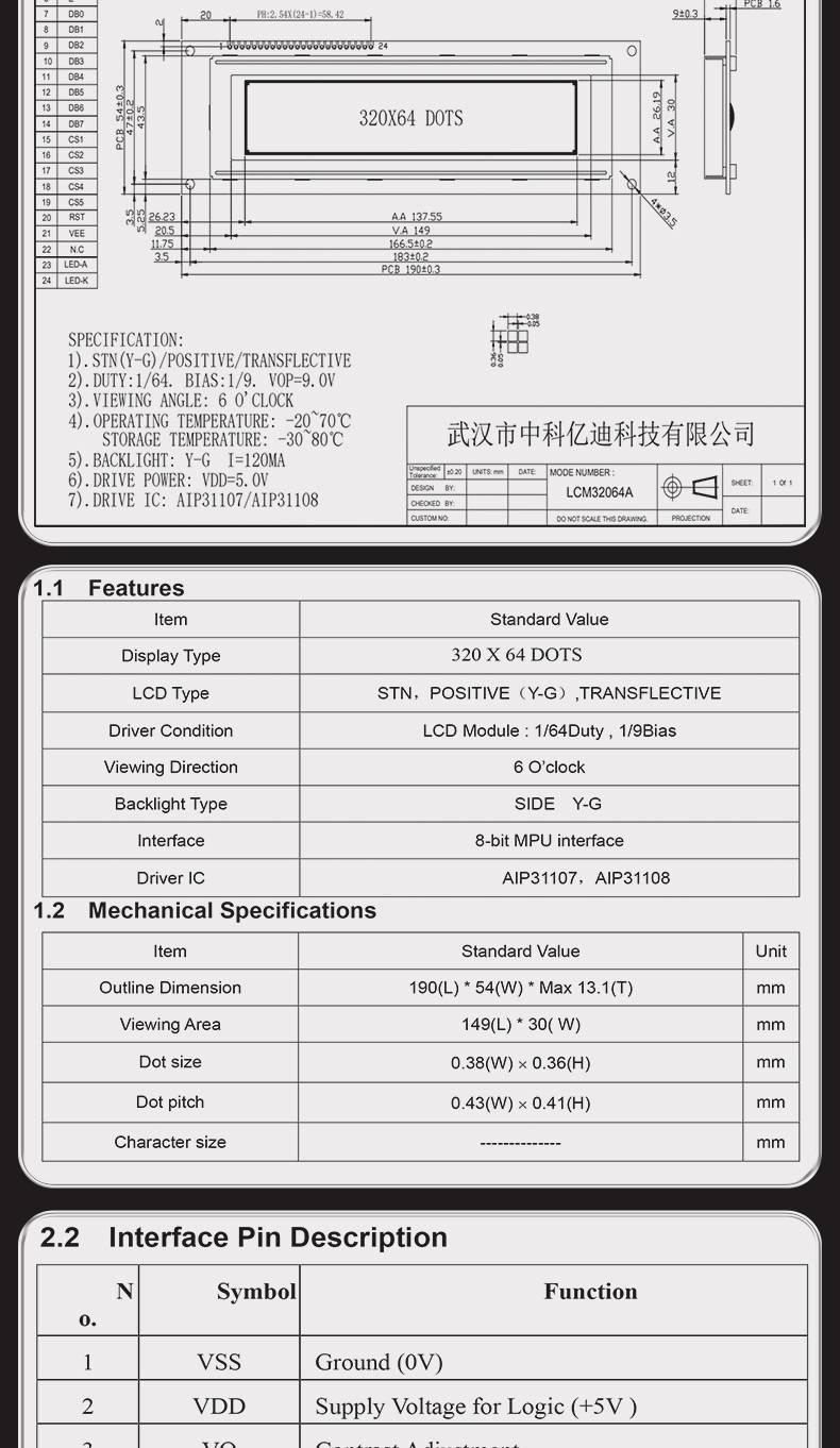 阿特拉斯空压机控制器液晶显示屏LCM32064A兼容替代TM32064ADP-1