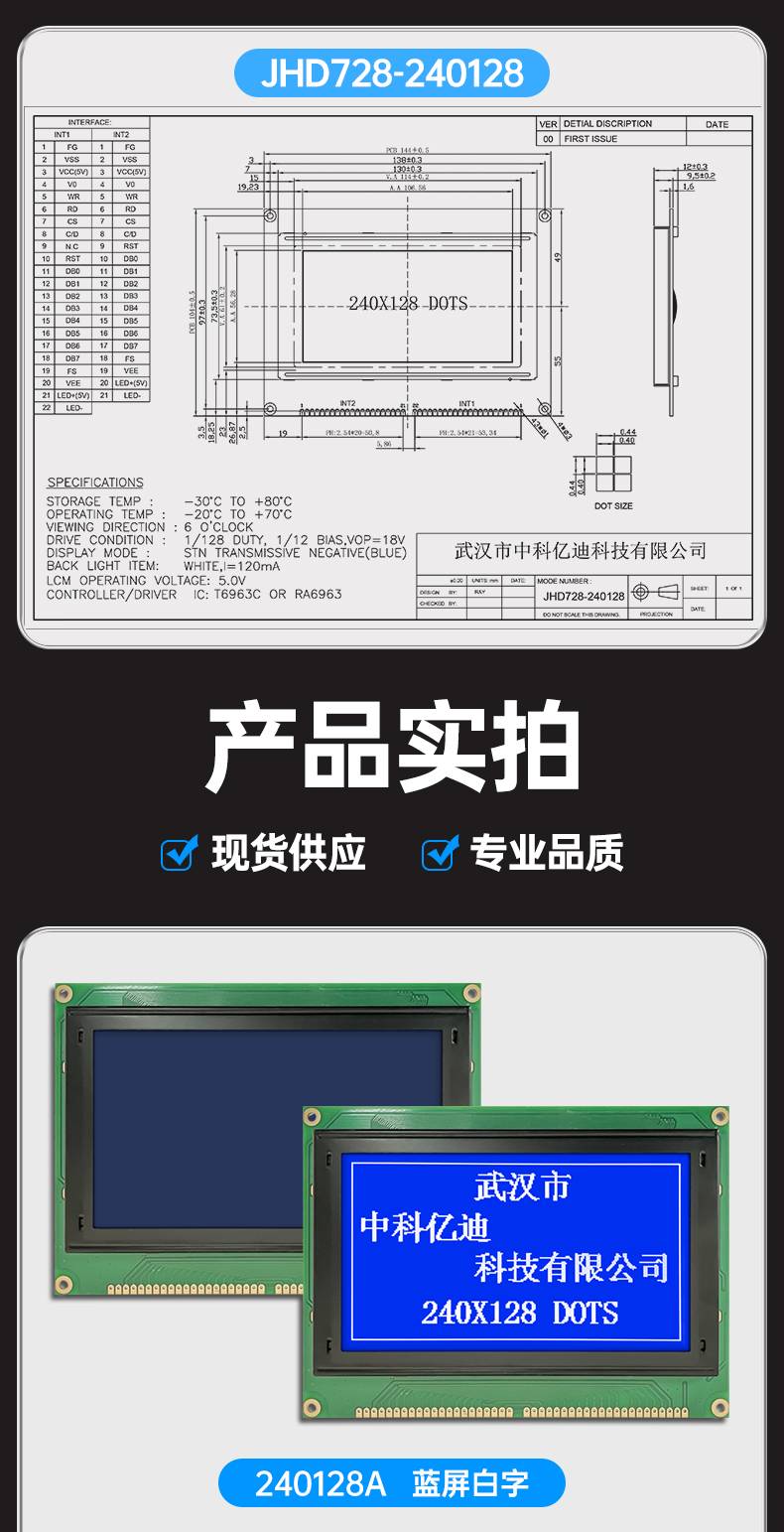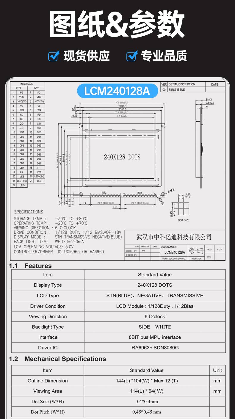 LCM240128A液晶显示屏RA6963/240*128LCD240128B/T6963C/UCI6963C