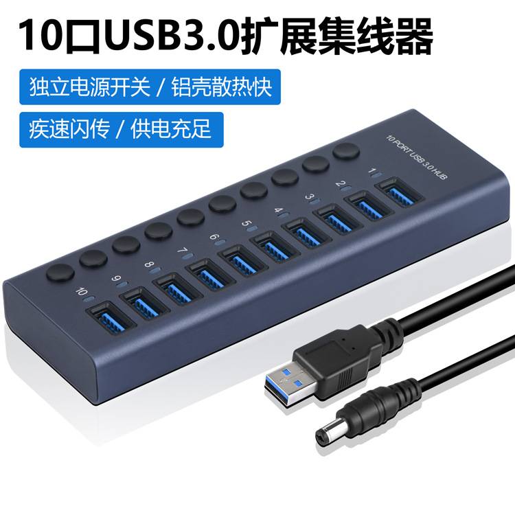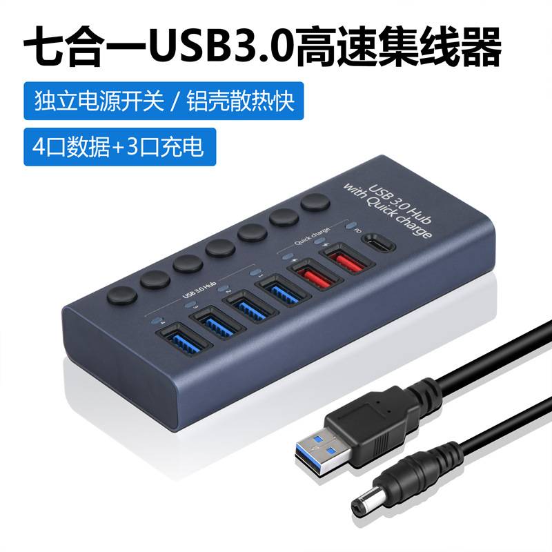 铝合金多口USB3.0多功能集线器独立开关大电流USB集线器拓展器