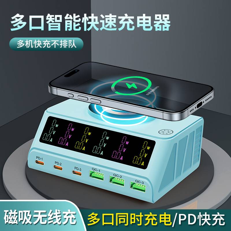 多口充电器110W智能数显PD45W快充手机笔记本电脑充电磁吸无线充