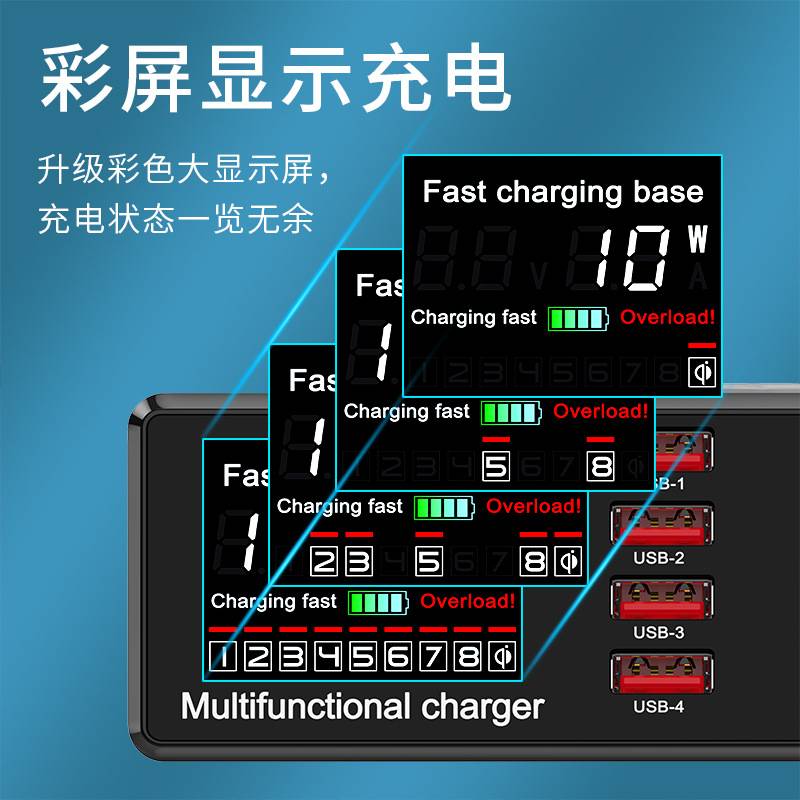 手机充电器QC3.0多口USB智能显示电压电流PD20W 无线充电器