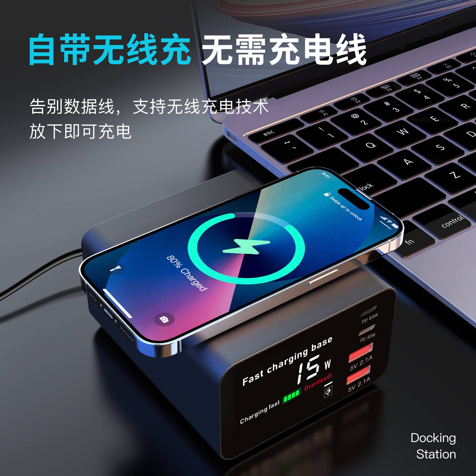 多口充电器140W智能充电座PD65W手机笔记本平板通用无线充电器