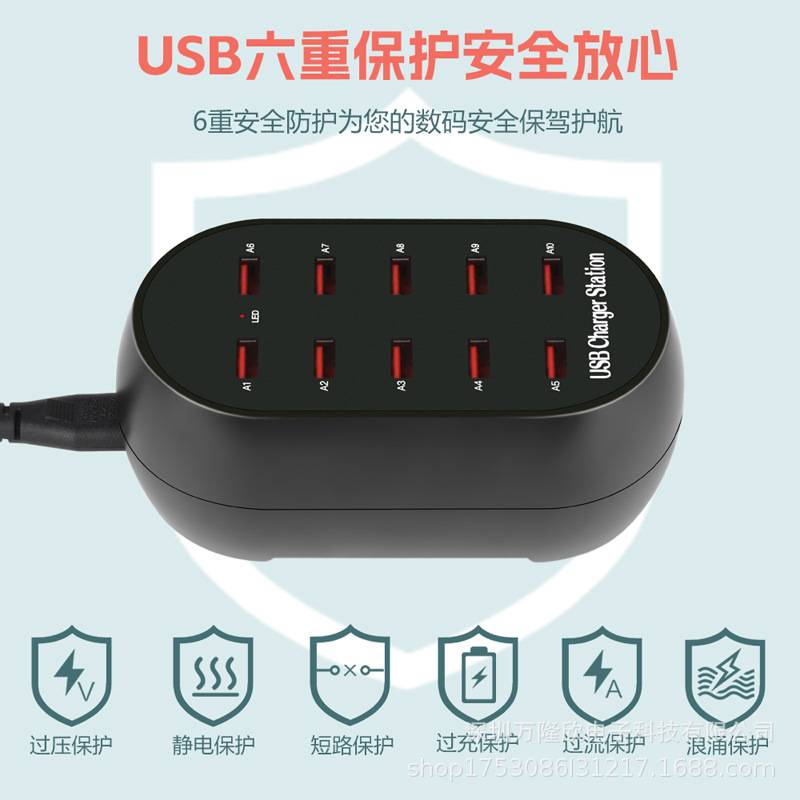 多口USB手机充电器10口20口大功率平板手机USB设备充电 现货批发