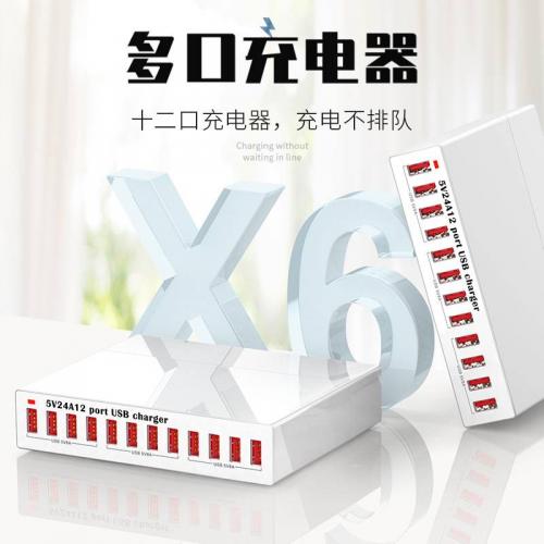 多口USB充电器120W多孔充电站大功率快充直播间工作室USB多口插座