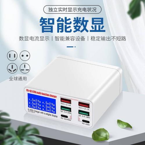 6口USB充电器 大功率PD45W快充+QC3.0LDE独立电流显示充电器