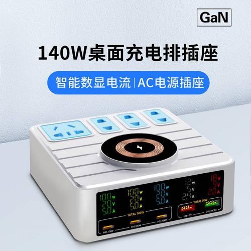 多口USB智能无线快充插座智能数显电流140W大功率电子品电排插座