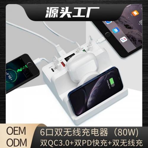 手机充电器 80W双无线充支架USB多口插座PD20W快充多功能充电器