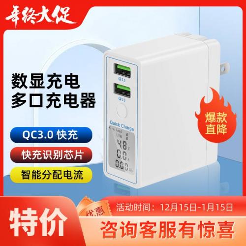 手机充电器QC3.0多口USB智能显示电压电流PD20W 无线充电器