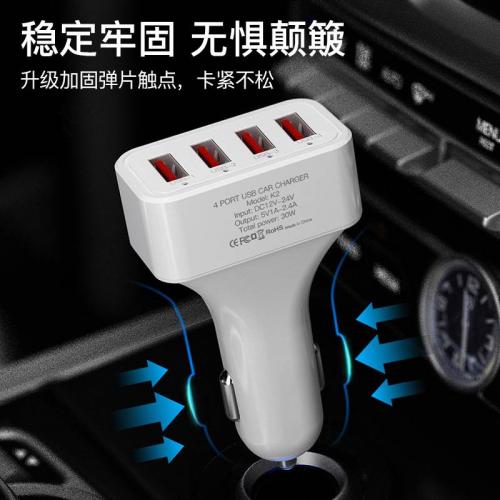 跨境车载充电器30W一拖四点烟器车充4口USB多功能车充头批发