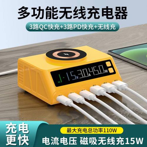 多口充电器110W智能数显PD45W快充手机笔记本电脑充电磁吸无线充