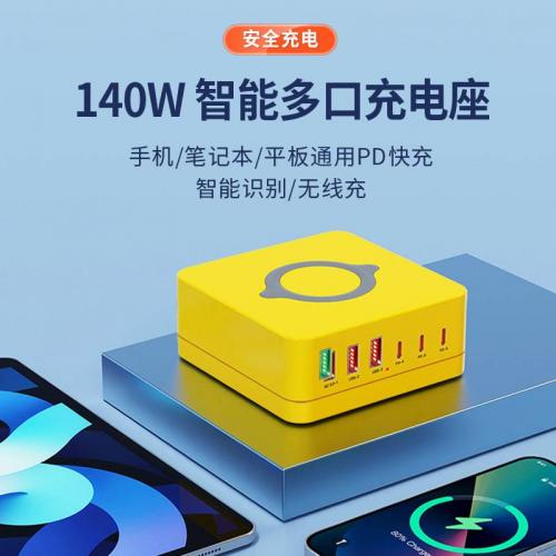 多口充电器140W智能充电座PD65W手机笔记本平板通用无线充电器