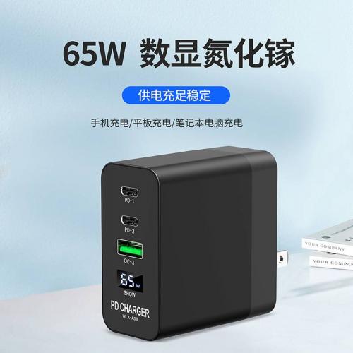 跨境氮化镓充电器65W数显支持手机平板笔记本电脑大功率充电头