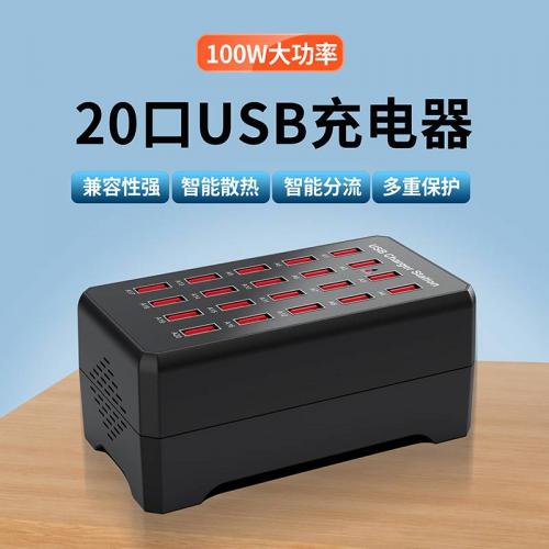 20口USB充电器100W支持5V1A2A2.4A家用办公室直播多口USB充电器