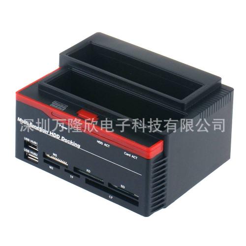 供应USB2.0硬盘底座 多功能读卡器HUB双口IDE+SATA外接移动硬盘盒