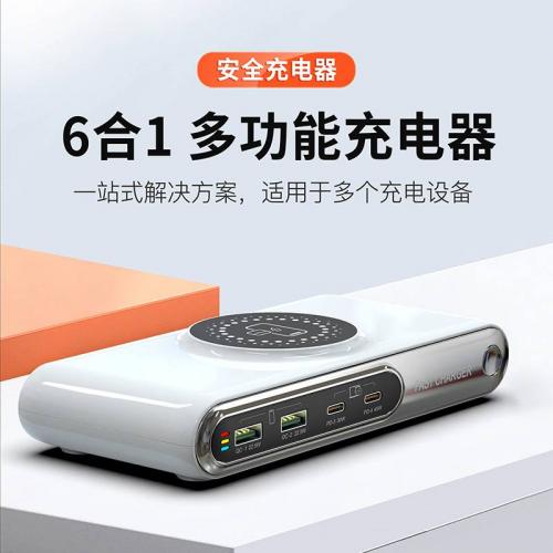 新品手机充电器智能数显6口充电器PD65W支持笔记本电脑手机充电