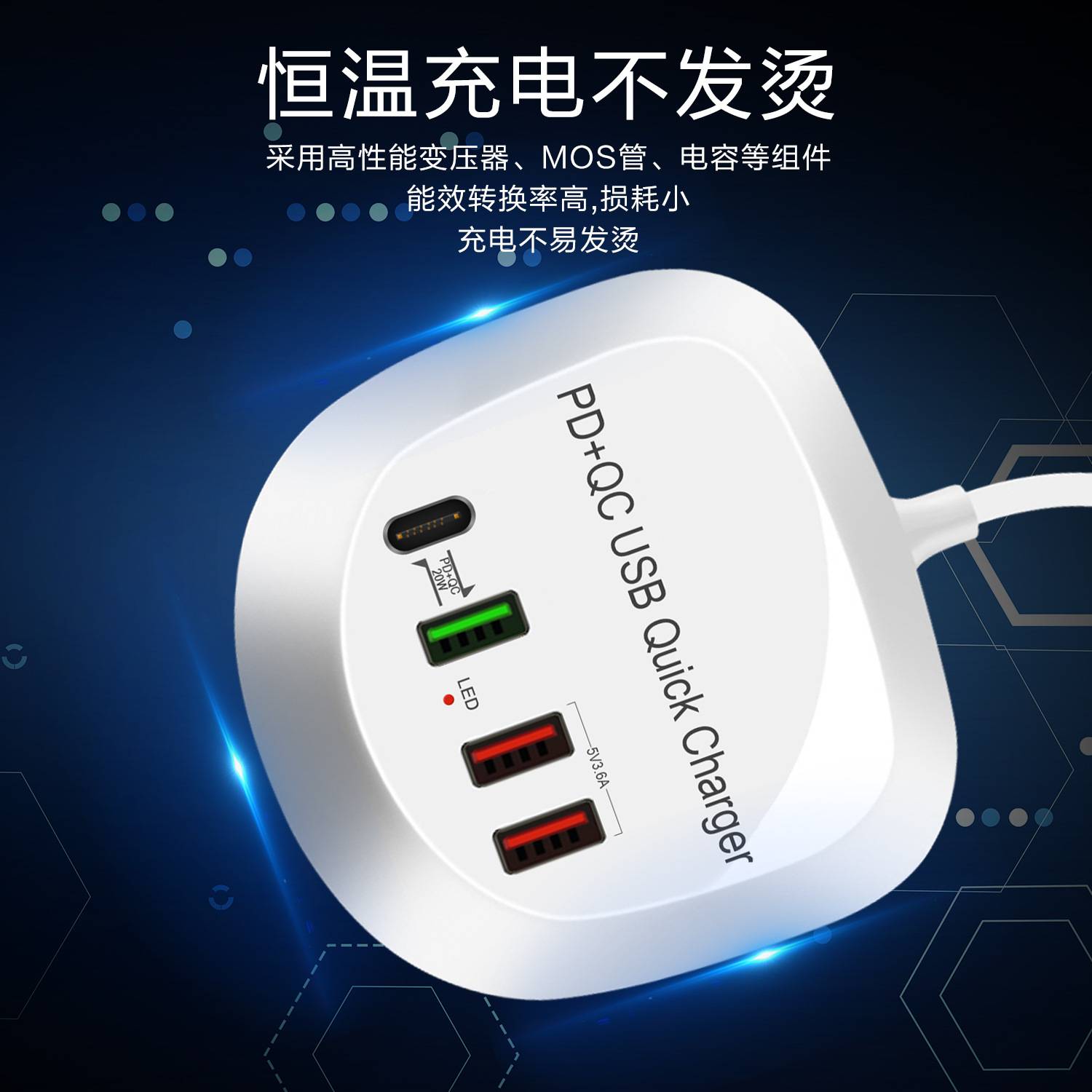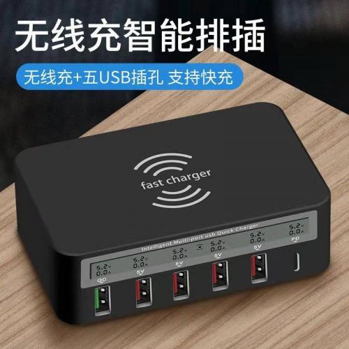 跨境6口USB充电器 QC3.0快充PD20W 无线充电器15W 3C数码5V20A