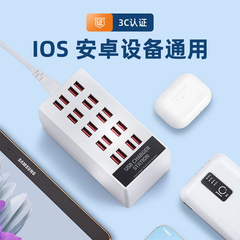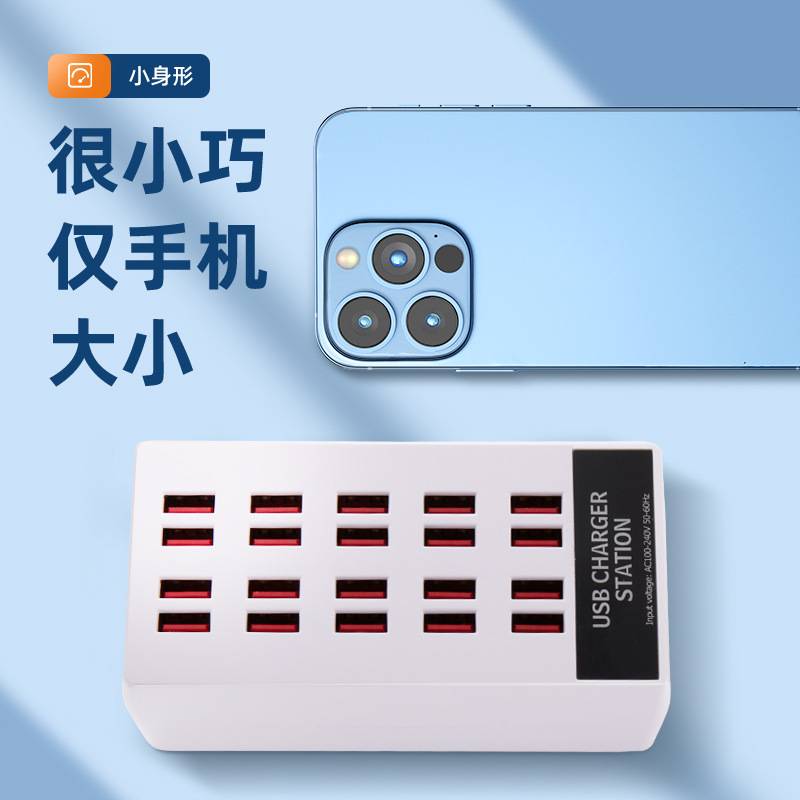 USB多口充电器20口100W手机平板智能充电排插直播工作室充电