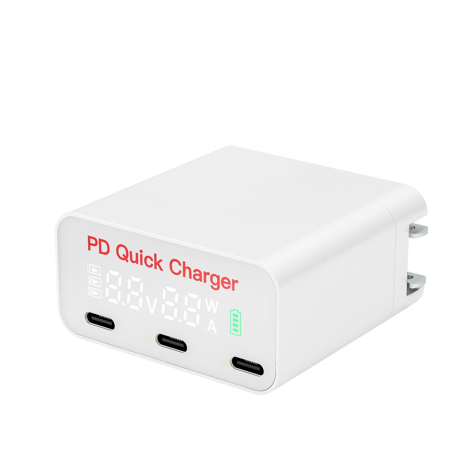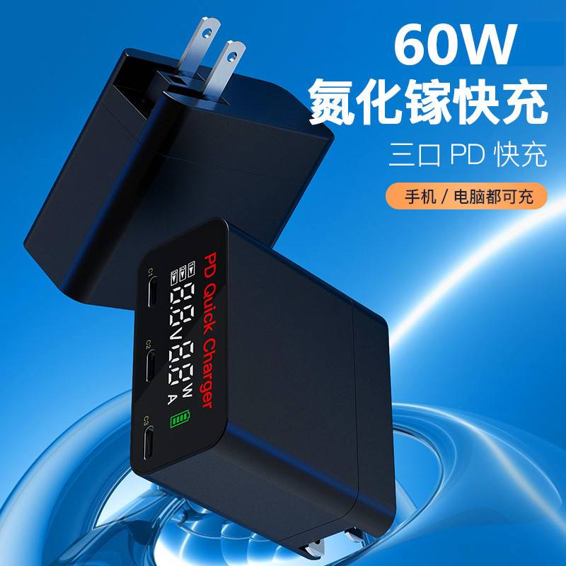 氮化镓充电器60W3口PD数显快充手机充电头笔记本Gan氮化镓快充头