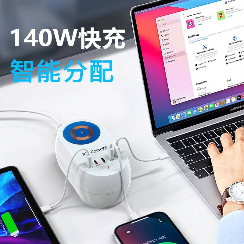 多口USB智能无线快充插座智能数显电流140W大功率电子品电排插座