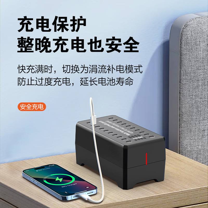 USB多口充电器20口100W手机平板智能充电排插直播工作室充电