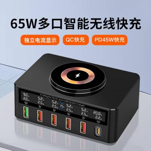 多口充电器磁吸无线充电器PD45W快充支持笔记本电脑手机充电座
