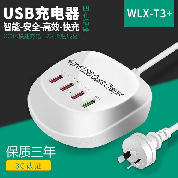跨境4口USB充电器 QC3.0快充多功能手机充电器多口快充插座