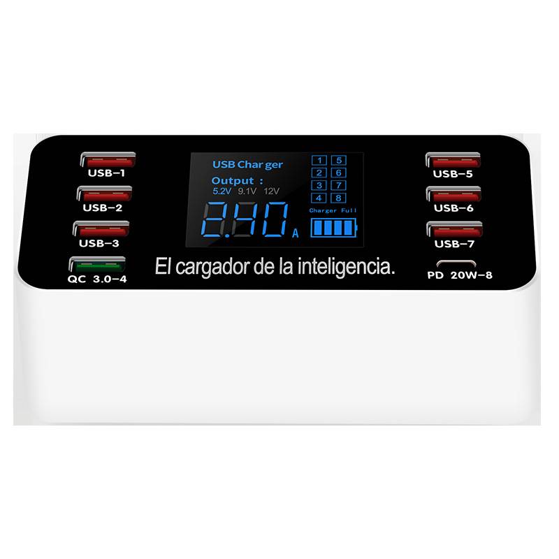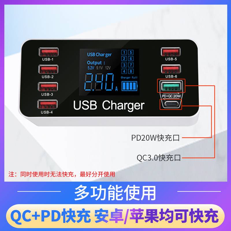 跨境多口USB充电器 QC3.0快充手机平板8口智能数显PD20W充电器