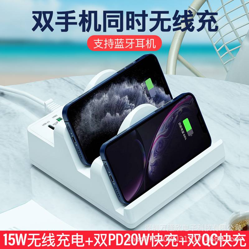 手机充电器 80W双无线充支架USB多口插座PD20W快充多功能充电器