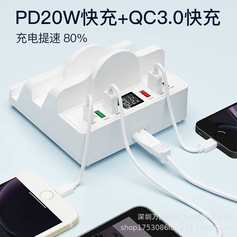 跨境多口USB充电器 QC3.0快充手机平板8口智能数显PD20W充电器