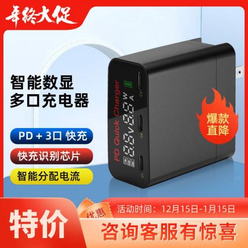 氮化镓充电器60W3口PD数显快充手机充电头笔记本Gan氮化镓快充头