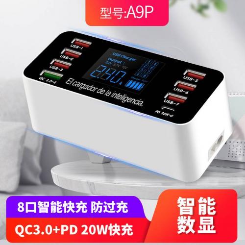 跨境多口USB充电器 QC3.0快充手机平板8口智能数显PD20W充电器
