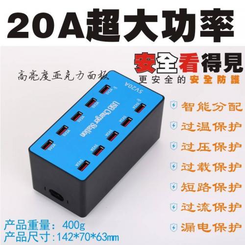10口20口手机平板多孔USB排插座100W大功率直播工作室多口充电器