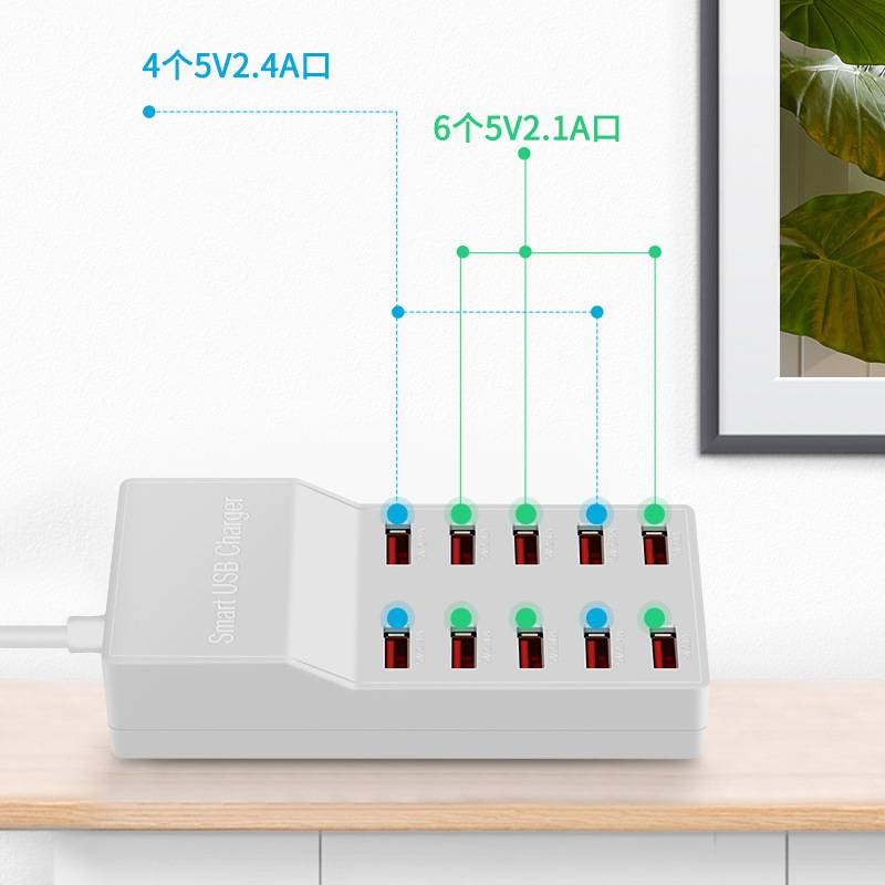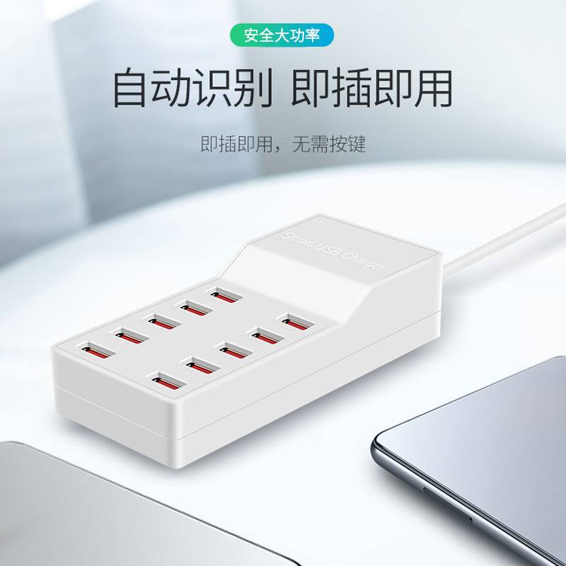 源头工厂10口50W排插手机平板 5v2a智能快充插座USB多口充电器