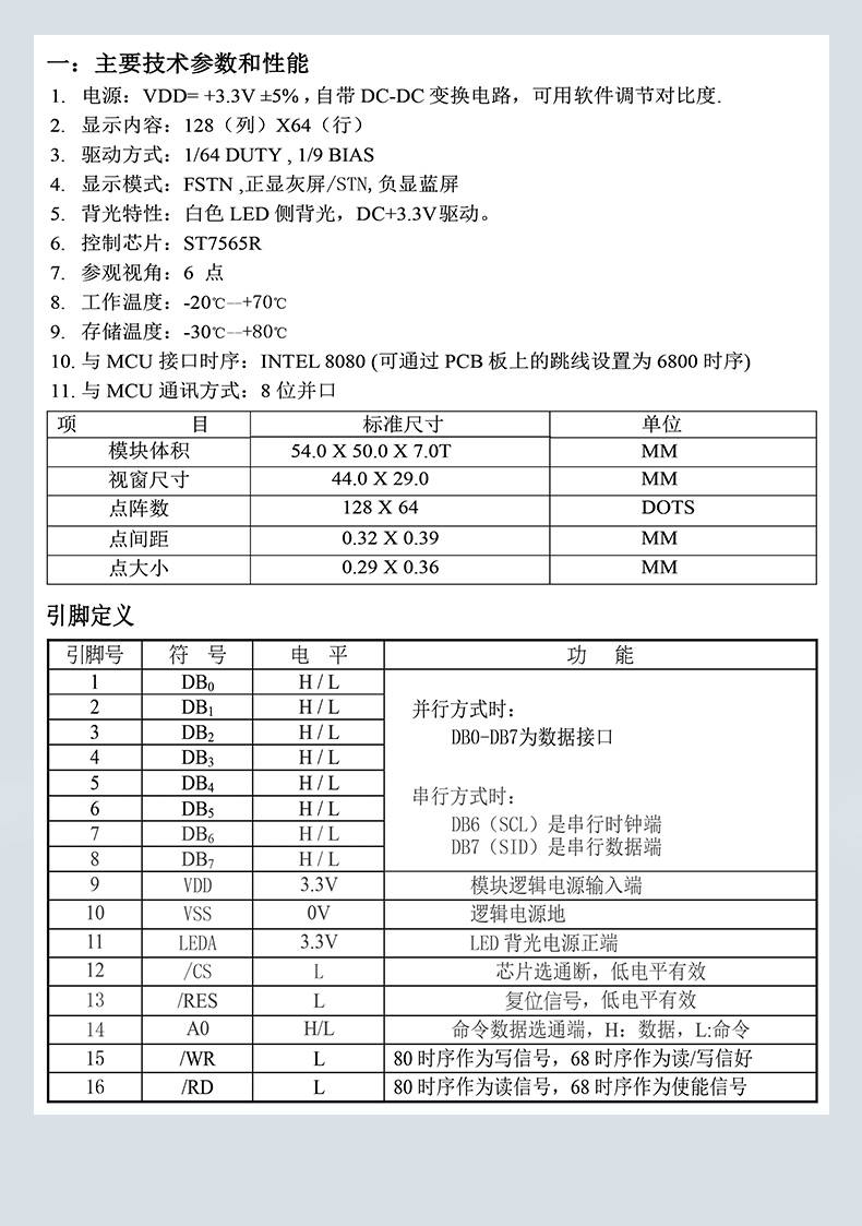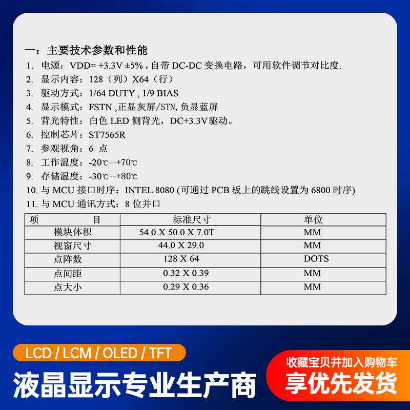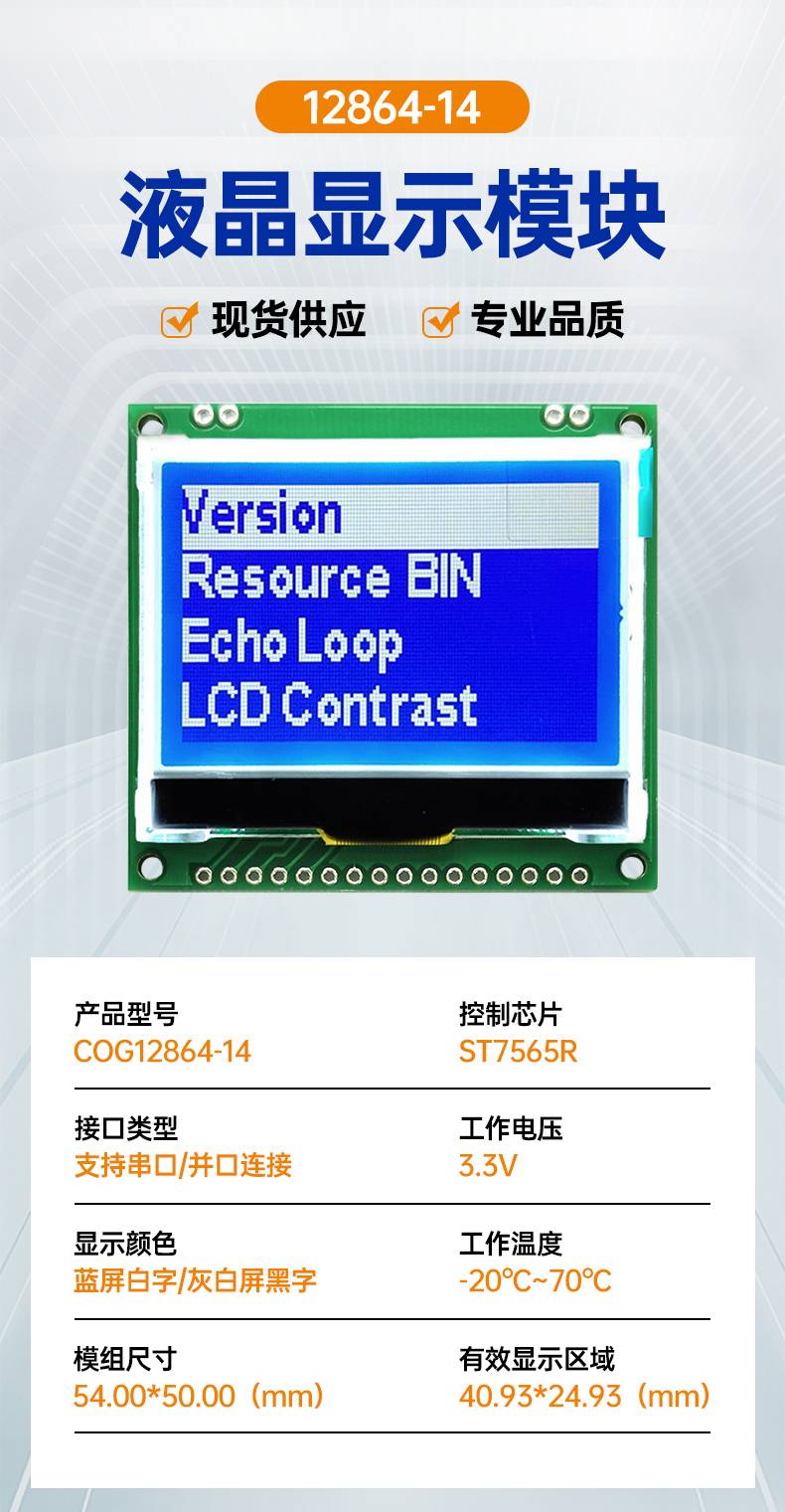 COG12864-14LCD液晶屏12864工厂供应3.3V显示模组 ST7565R驱动