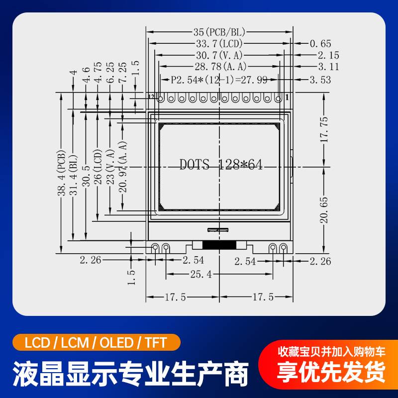 COG12832AT液晶显示模块LCD12832显示屏串口连接LCM工厂现货直发