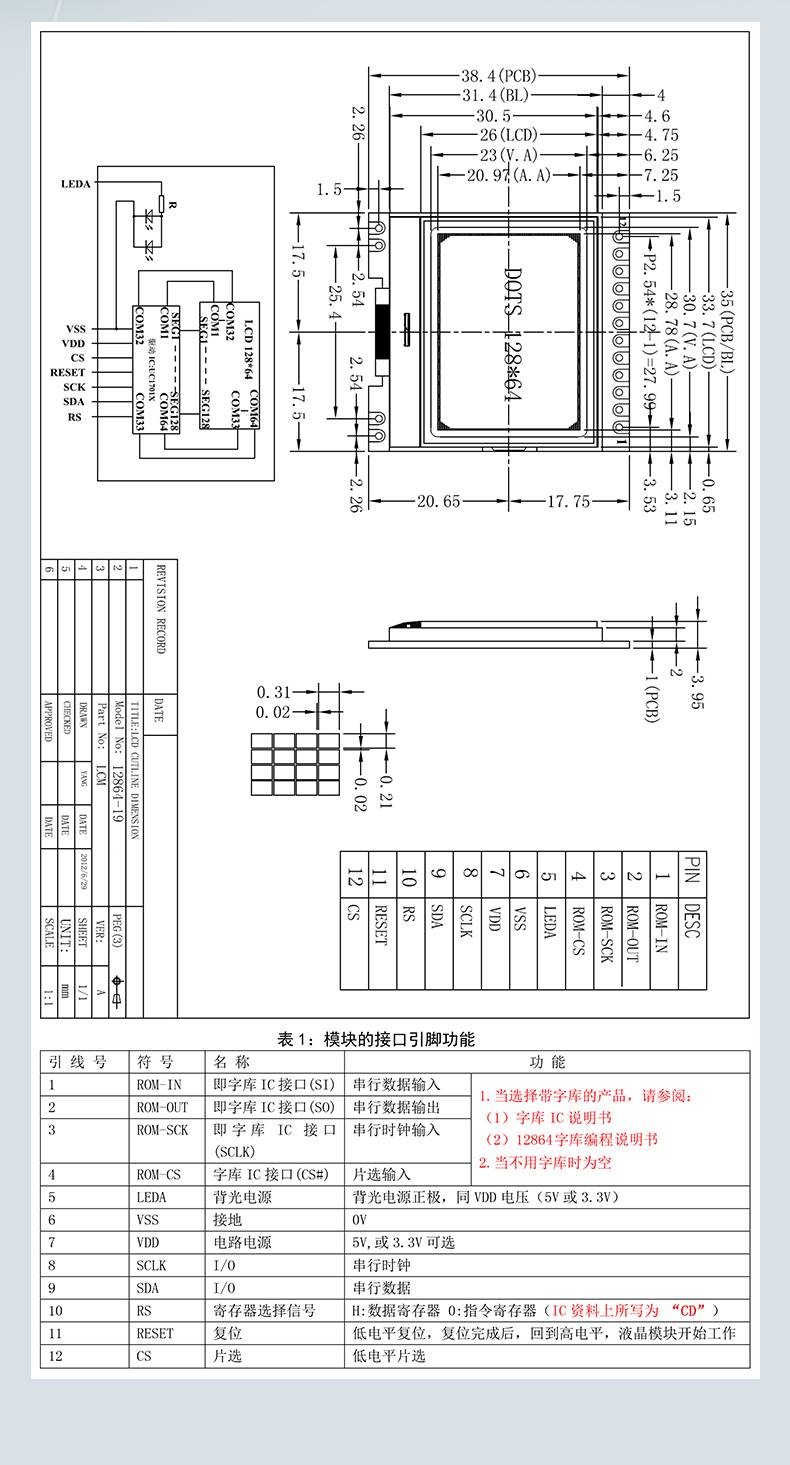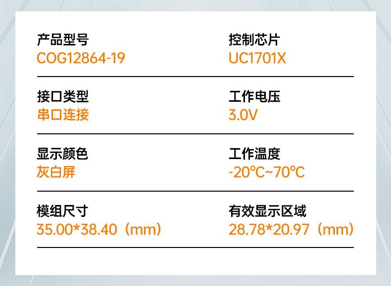 COG12864-19液晶显示屏模块LCM12864点阵液晶屏UC1701X串口灰白屏