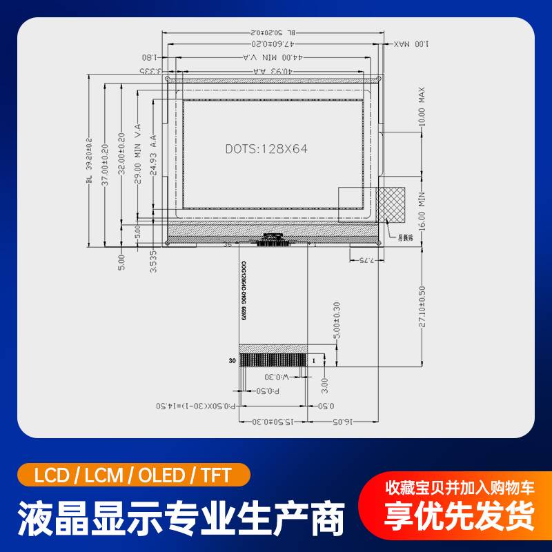 图形点阵LCM12864Q液晶屏模块128*64点阵蓝屏黄绿屏灰屏汉字显示