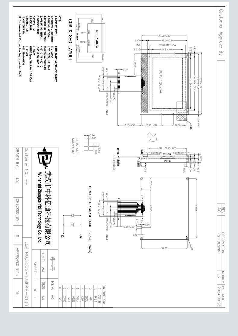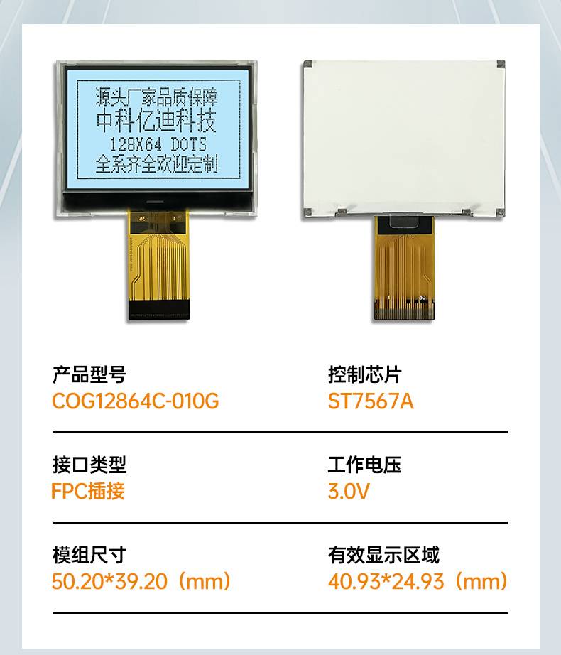 COG12864C-010液晶屏ST7567芯片HFG12864-653重合闸LCD液晶显示屏