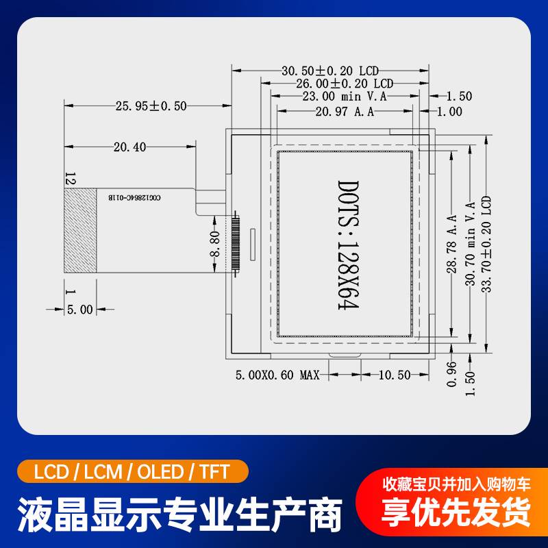 液晶屏COG12864C-05B液晶显示屏模块ST7567A驱动128X64点阵屏蓝屏