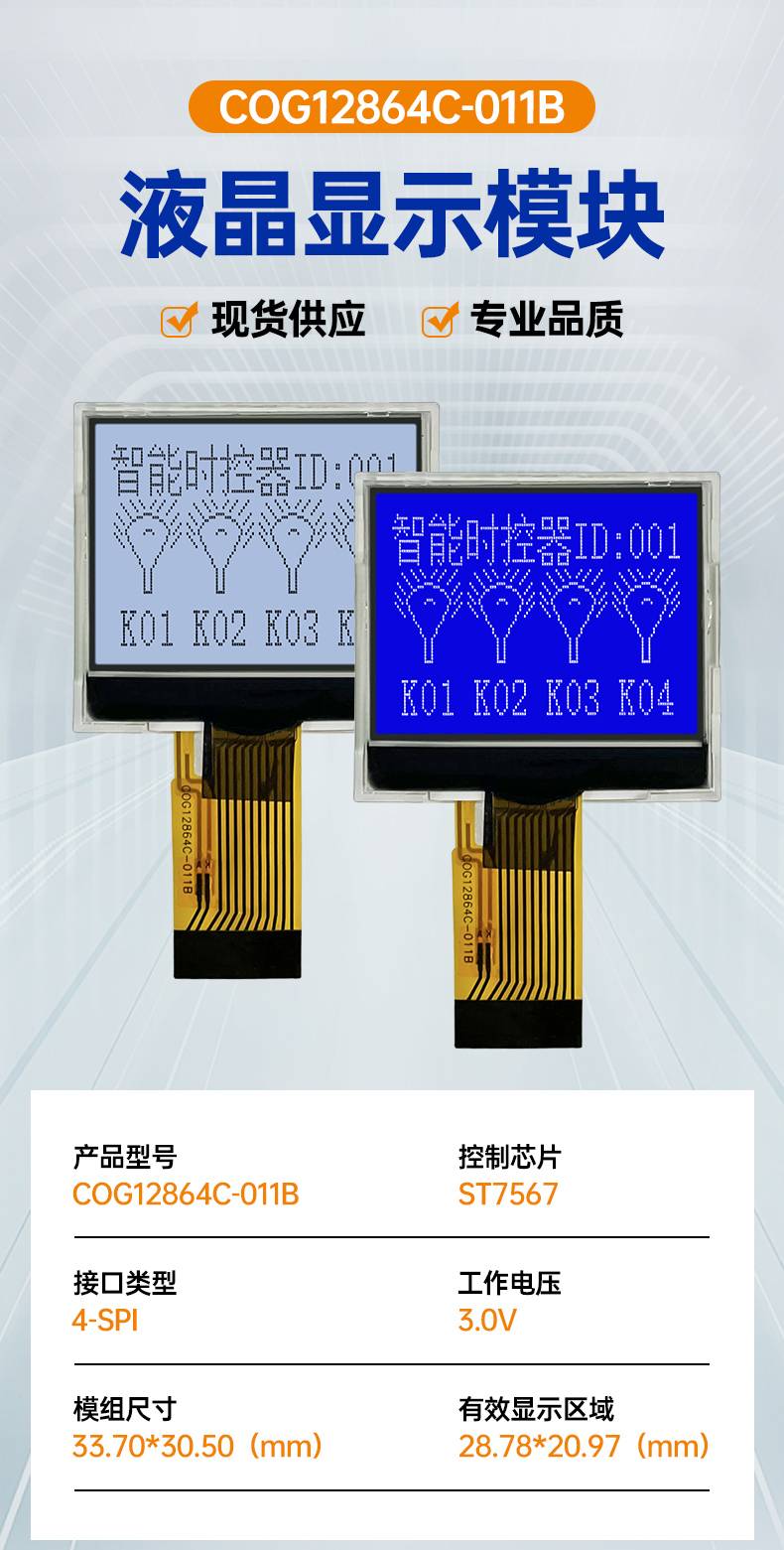COG12864C-011B液晶屏显示模块ST7567驱动灰屏蓝屏智能照明时控屏