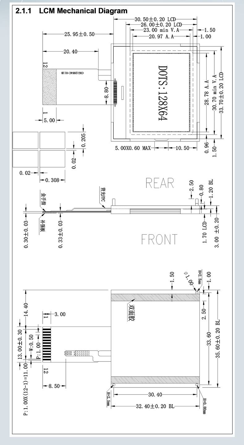 LCM25664-01图形点阵液晶屏模块LCD256*64显示屏图形汉字3.3V5V