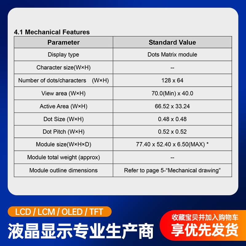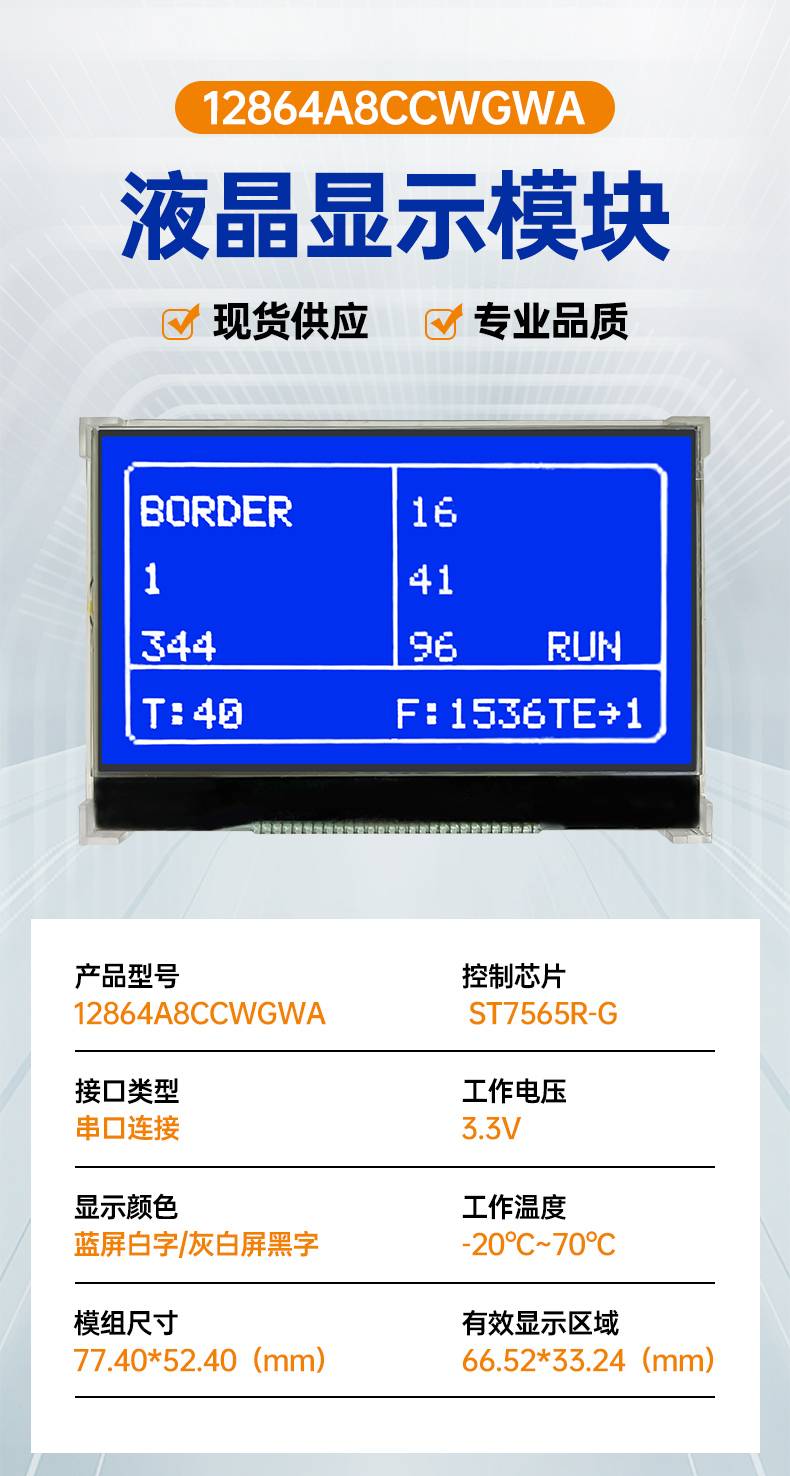 COG12832AT液晶显示模块LCD12832显示屏串口连接LCM工厂现货直发